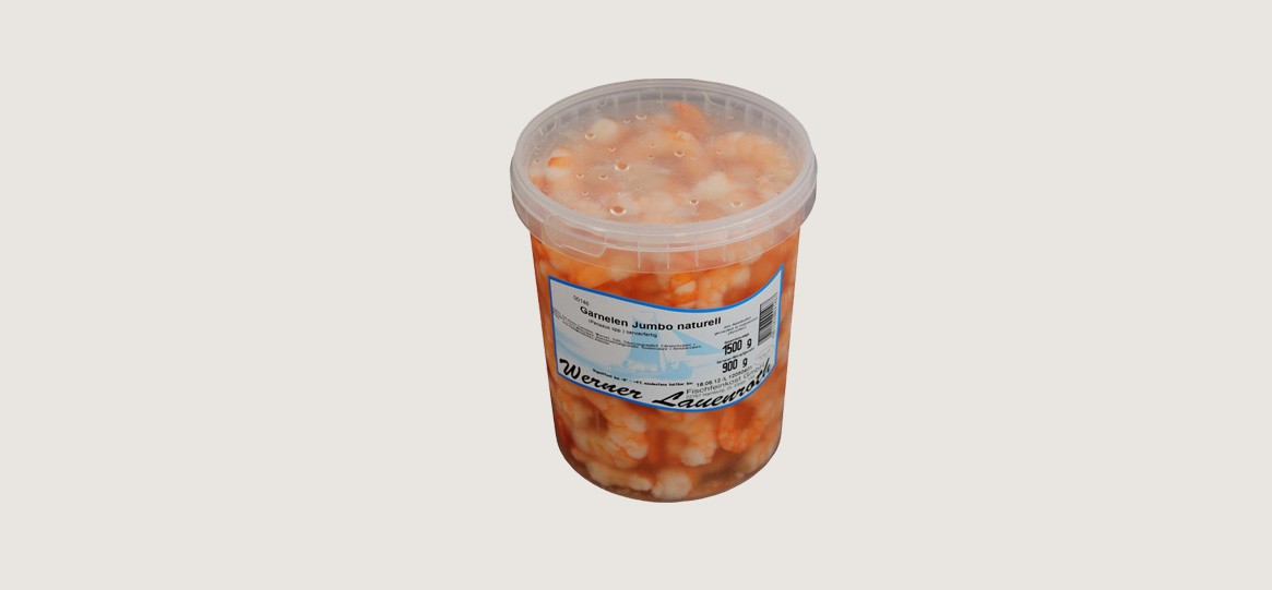Frische SchalentiereFrische MatjesKrustentiereCaviar und KaviarDelikatessenFRISCHE SCHALENTIERE » Ost-Asia Jumbo Garnelen, festes Flusskrebsfleisch und zartes handgepultes Nordseekrabbenfleisch... verlockende VariationenJumbo Garnelen 40/60 » Ost-Asia Garnelen, gekocht, geschält und servierfertig 02024 - 1000 gGarnelen 100/200 » Bissfeste Garnelen naturell in einer milden, harmonisch abgestimmten Lake, gekocht, geschält, servierfertig (Premium-Qualität) 02064 - 1000 gGarnelen 200/300 » Ost-Asia Garnelen, gekocht, geschält und servierfertig 02084 - 1000 gFlusskrebsfleisch » Festes Flusskrebsfleisch in einer milden, harmonisch abgestimmten Lake 02654 - 1000 gNordseekrabbenfleisch » Feines zartes handgepultes Nordseekrabbenfleisch 07494 - 1000 g