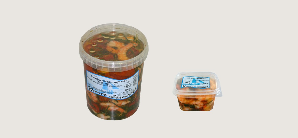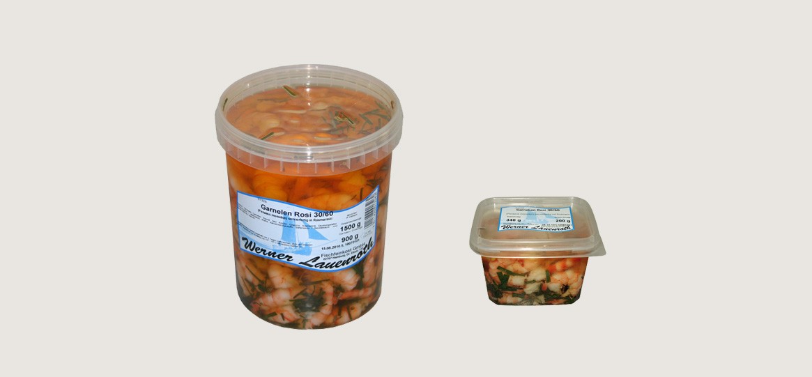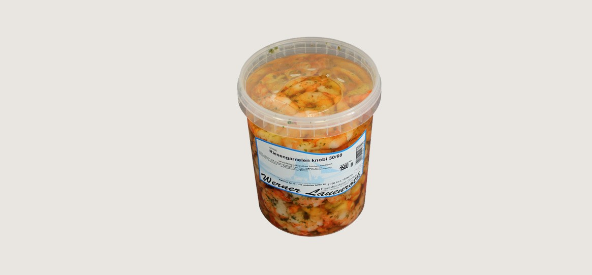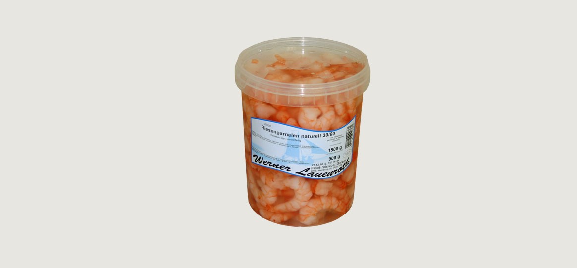 » Feinste Jumbogarnelen, ideal zum Grillen und Braten. Bissfeste Garnelen in einer milden, harmonisch abgestimmten Lake, gekocht, geschält (Standart-Qualität)