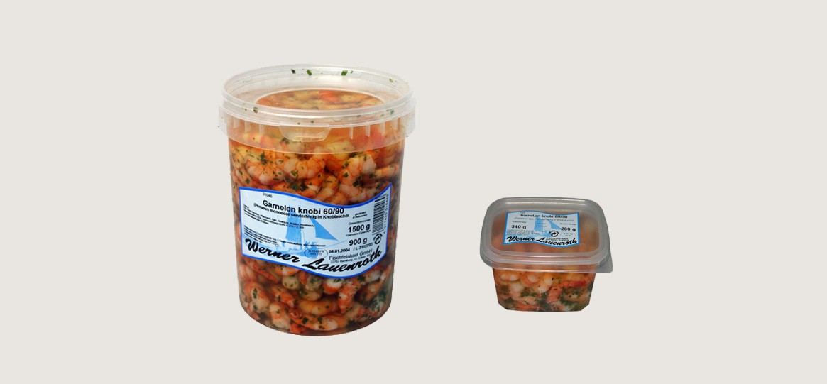 » Bissfeste Garnelen in aromatischem Knoblauchöl, kein Knoblauchgeruch nach dem Verzehr - gekocht - geschält (Premium-Qualität)