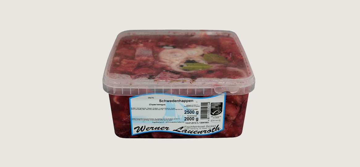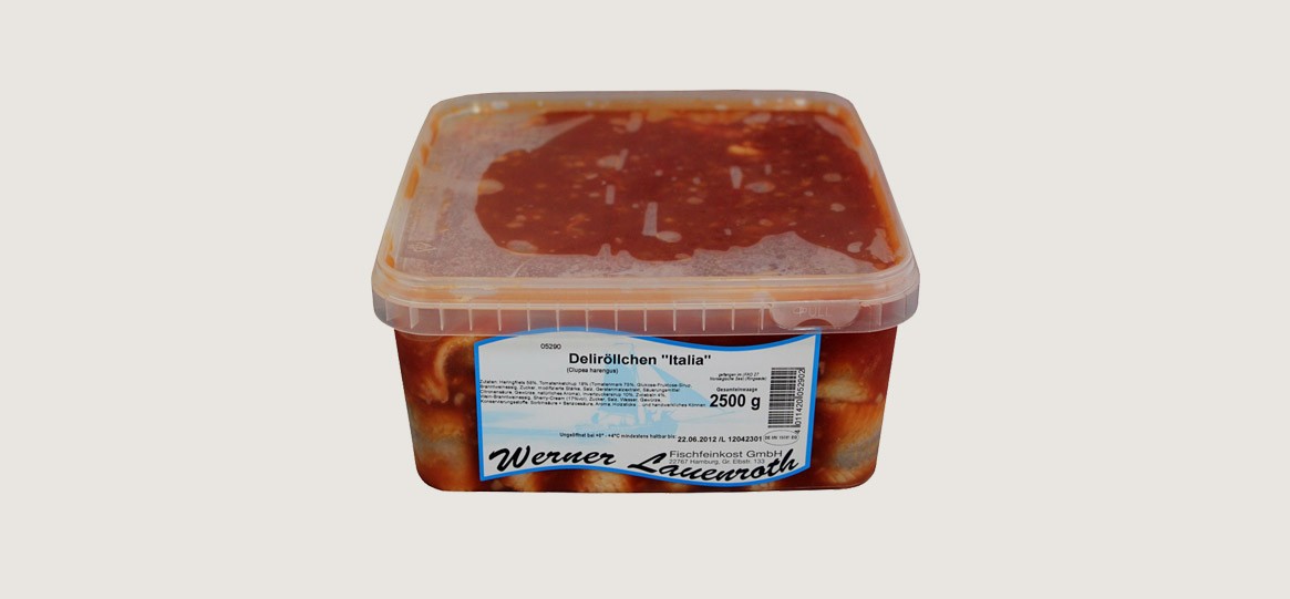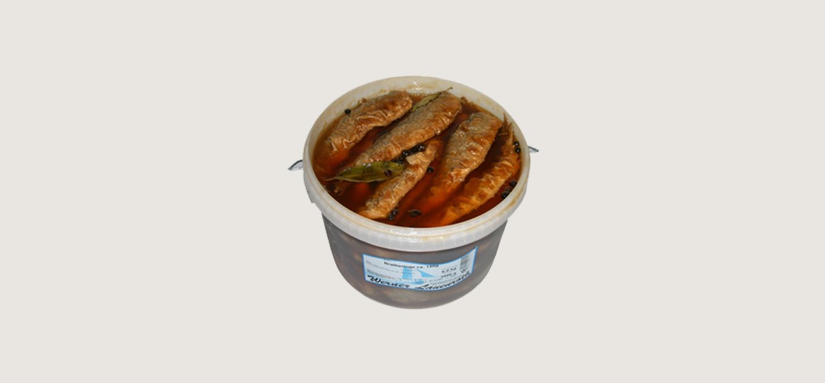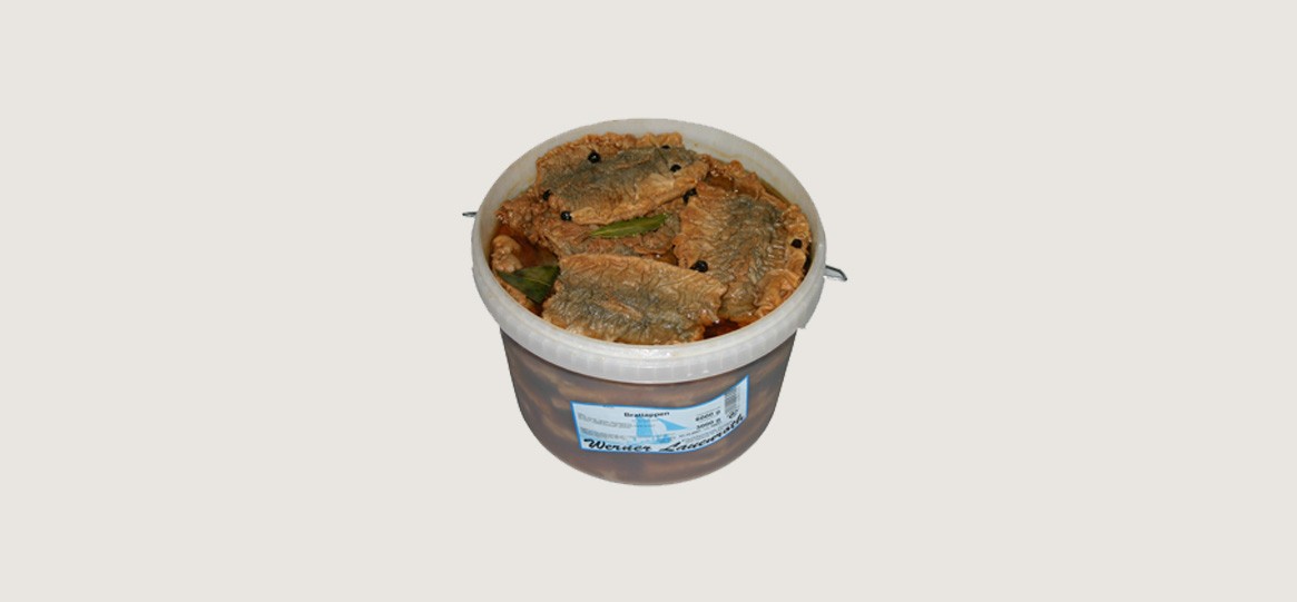 Marinierter HeringMarinierter MatjesBismarckheringSardellenMariniertesMARINIERTER HERING »Hamburger Hering, Heringssalat und HeringshappenHering in Gelee » Zarter Hering umschlossen mit klarem Gelee 05404 - 1000g SchaleZwiebel-Sahne-Heringfilets » Ganze Heringsfilet mit weichem Biss in einer weißen Sauce. Leicht sauer mit einer fruchtig frischen Note, sehr sahnig mit Zwiebeln, Apfel, Gurke 05053 - 2500g SchaleDeliröllchen Italia » Kleine Rollmöpse ohne Haut mit einer roten Sauce verfeinert 05290 - 2500g SchaleSherry Heringfilets » Milde Heringsfilets verfeinert mit hochwertigem Sherry 05960 - 2500g SchaleMarinierte Sild in Tomate » Feine Heringsstücke in einer frisch kräftigen und pikanten Tomatentunke mit frischen Kräuter 16032 - 2500g SchaleMarinierte Sild in Curry » Feine Heringsstücke in einer frischen, cremigen, auf das Produkt abgerundeten Currytunke. 16072 - 2500g SchaleSchwedenhappen » Rötliche braune Heringshappen mit bunten Gewürzen und Kräuter 05270 - 2500g SchaleBrathering 160g/Stück » Braungebratene Heringe eingelegt in einem würzigen Aufgussessig mit Wacholder, Lorbeer, Karottenscheiben und Zwiebeln 05305 - 3500g TopfBratheringshappen » Braungebratene Heringshappen eingelegt in einem würzigen Aufgussessig mit Wacholder, Lorbeer, Karottenscheiben und Zwiebeln 05321 - 1000g TopfBratheringfilet » Braungebratene Heringsfilets eingelegt in einem würzigen Aufgussessig mit Wacholder, Lorbeer, Karottenscheiben und Zwiebeln 05325 - 3000g Eimer